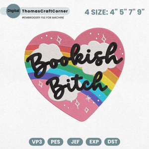 Bookish Rainbow Heart Embroidery Design, Bold Book Lover Machine Embroidery File, Book Lover Embroidery, Queer Pride Reading Embroidery File