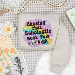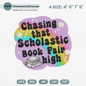 Chasing That Scholastic Book Fair High Embroidery Design, Nostalgic Book Lover Embroidery Design, Rainbow Reading Machine Embroidery File