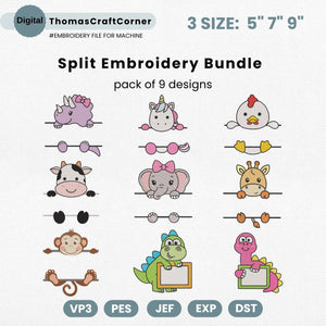 Split Safari Embroidery Bundle, Split Woodland Animal Embroidery Bundle, Student Name Tag School Classroom Label File, Instant Download